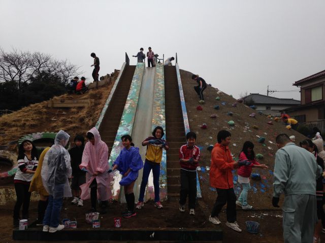 今年は、ペンキをなでつける子が多く、前回の手形はほぼ消えたように思います。