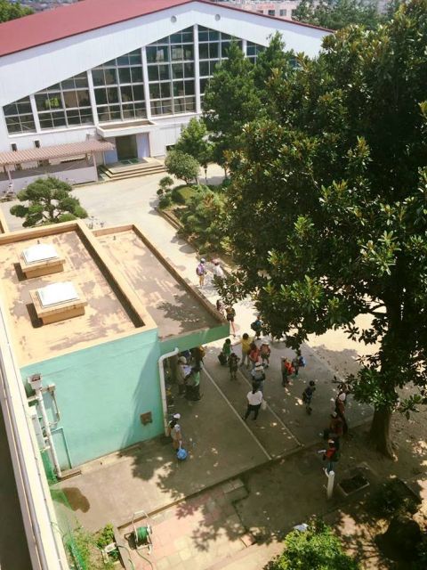意外と教室は快適でした。一部プライバシーと不自由のストレスは当然にあるものの、私たちでも十分宿泊に耐えます。