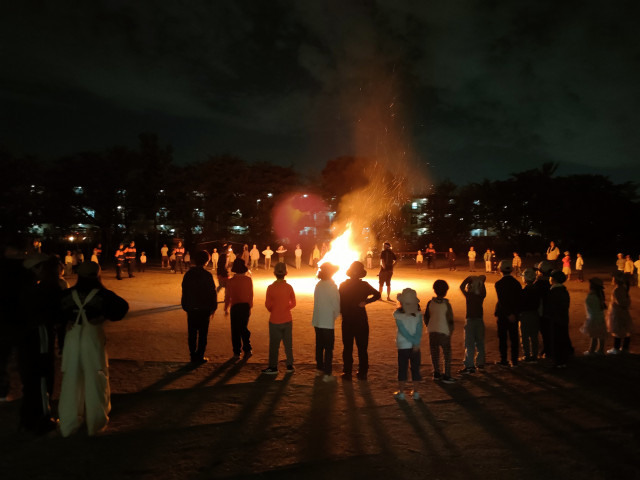 昼過ぎ集合→水遊び→バンド→夕食→キャンプファイヤー→学校での肝試し→学校の教室で宿泊→朝食→解散