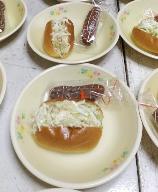 キャベツとポテチ(のりしお味)とマヨネーズをロールパンにはさみました。