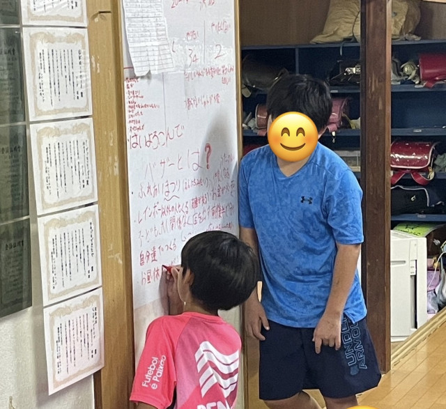 おやつ後は、続バザーの話合い。みんなで多数決をとって、バザーをやることに決まりました。その後、班を発表と色を決めました。