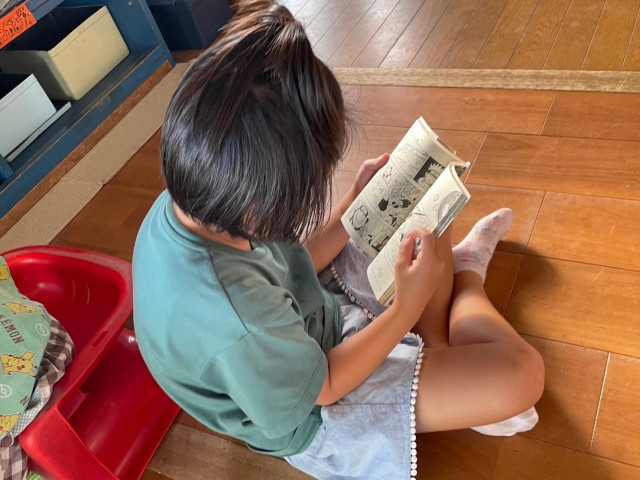 遊びは外でサッカー、一輪車、ブランコ、木登り等遊びました。
