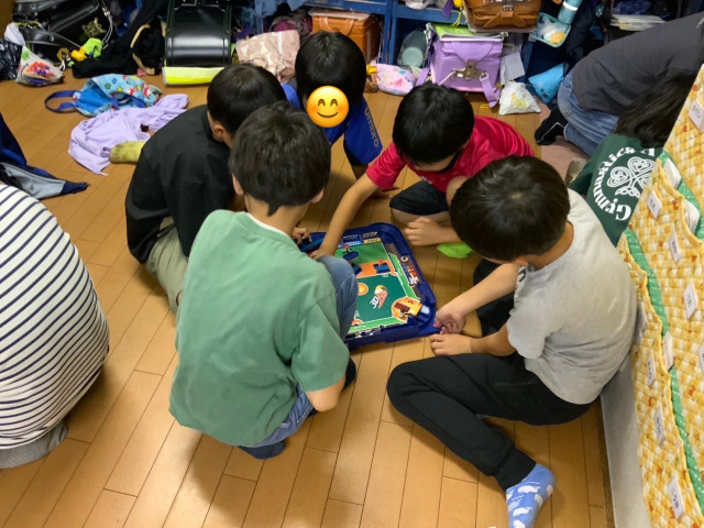 ぽつぽつ雨が、降ってきて部屋に避難しに来た子もいます。