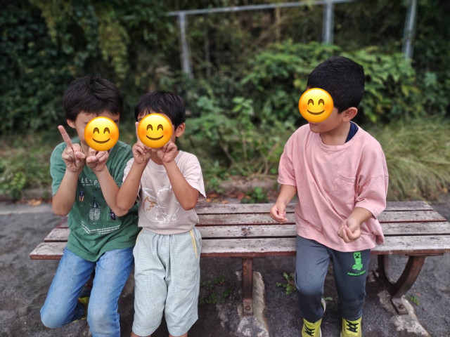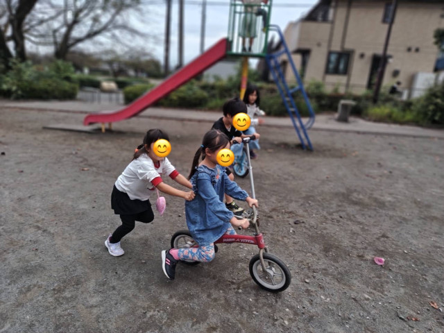 くもり空の下で元気に遊んでいました。