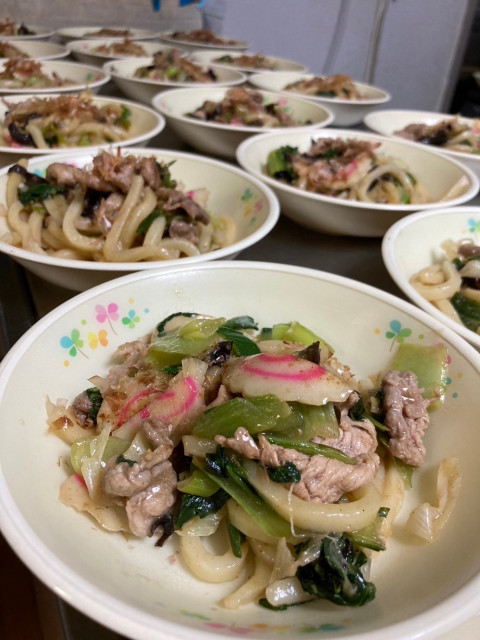 おやつは【焼きうどん】でした。