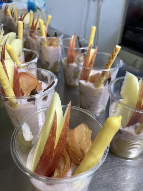 おやつは【フルーチェりんごトッピング、お土産】でした。