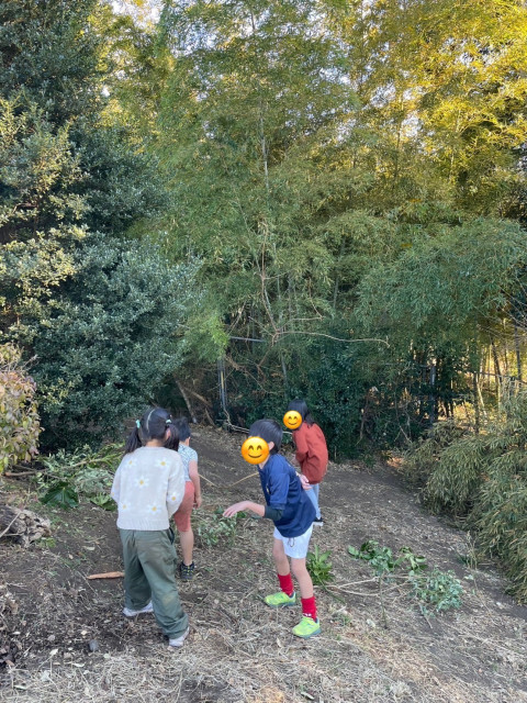 外でサッカー、一輪車、鬼ごっこ、森のごっこ遊び等しました!