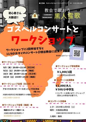 ロカマイソウルでは、11/9(土)に桃谷教会で行われるゴスペルコンサートで一緒に歌うワークショップ参加メンバーを募集しています。