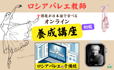 ロシアバレエ教授法のバレエ教師、バレエ教師を志す方が第1学年~第3学年の前課題を日本語で詳細に学ぶことができるオンライン講座。修了者には一般社団法人日本バレエダンサー育成協会から修了証が発行されます。
