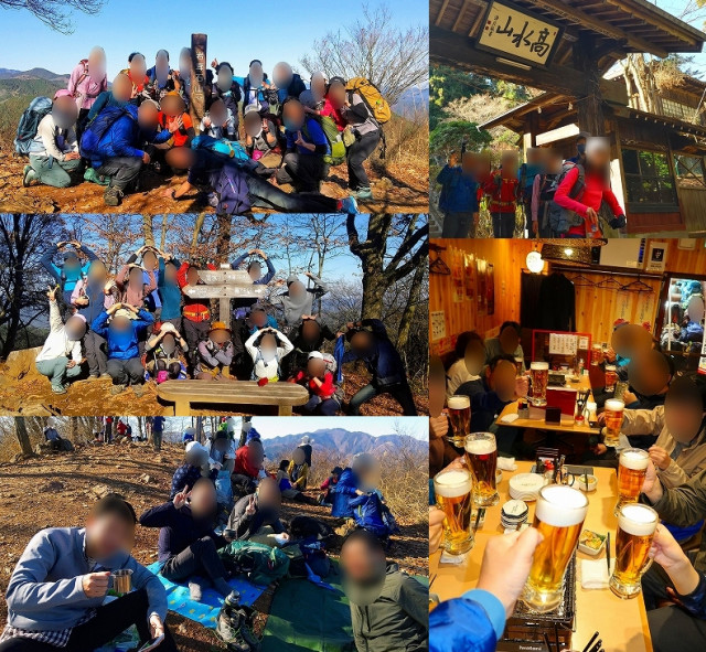 関東近郊の日帰りできる山々、夏の登山シーズンはアルプスや各地の名山、年数回の親睦飲み会