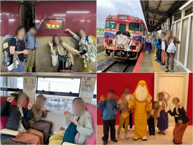 東京首都圏各自発=サンライズ出雲、米子空港、高速バス=境港・水木しげるロード、水木しげる記念館、出雲大社参拝=米子駅=バス=大山寺=宿へ集合、地元食材が味わえる宿宴会