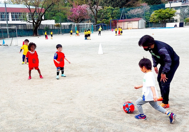 4名ということで2対2のチーム戦でリレーをしたりドリブル競争を行い、最後はゲームを行いました。