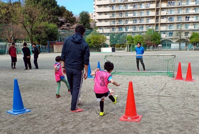そして新1年生をお迎えする体験会は2回目で、今日は2名のお友達が参加してくれました。まずは「鬼ごっこでもやるのかな?」と思っていたのですが、そこは歴戦の新1年生コーチ。ボールを使った遊びの中に、止める、動かす、蹴るなど、サッカーの基本要素がしっかり盛り込まれていました。楽しみながらサッカーに親しめるのがよいですね。