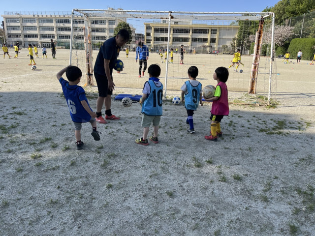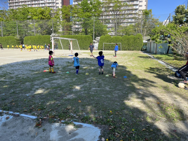 ちょっとした練習の後みんなでコーチを含む3vs3の4ゴールゲームを楽しみました。みんなドリブルやシュートの意識が高くとてもビックリしました。