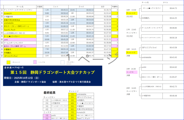 【予選レース組合せ決定】第13回静岡ドラゴンボート大会ツナカップ