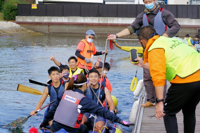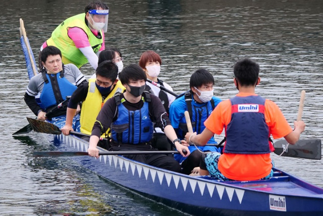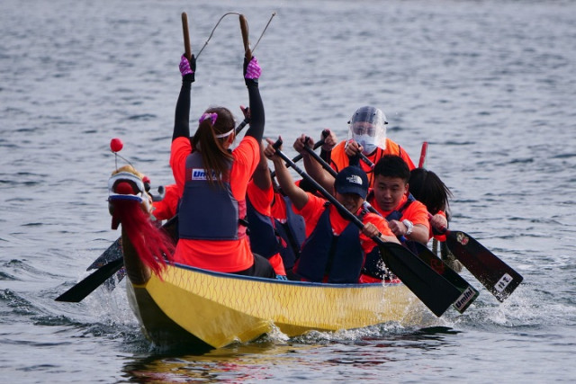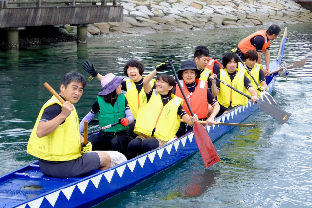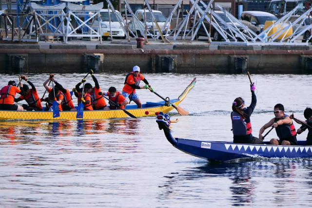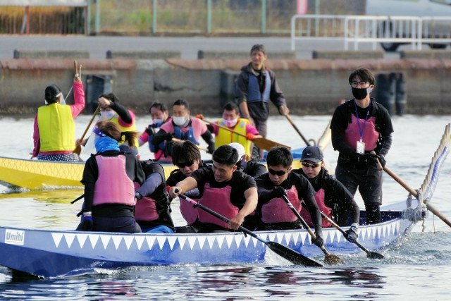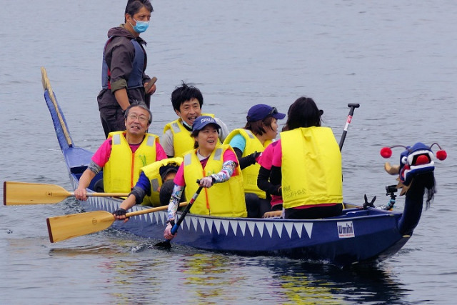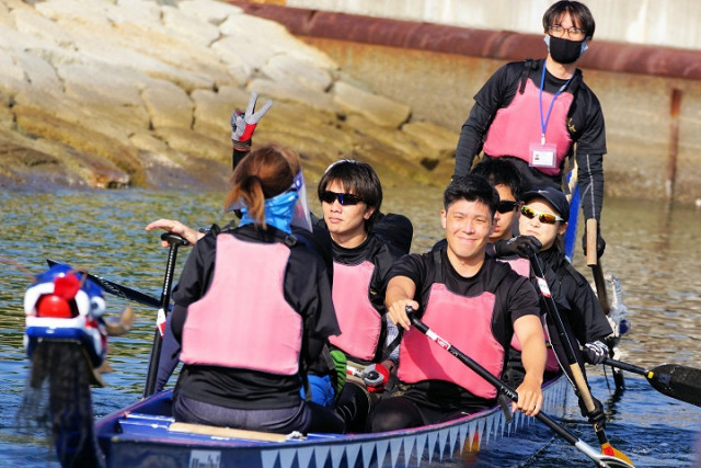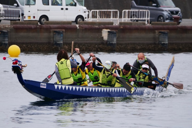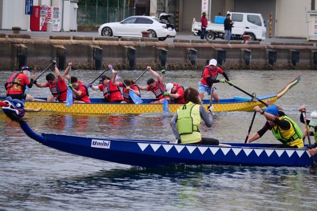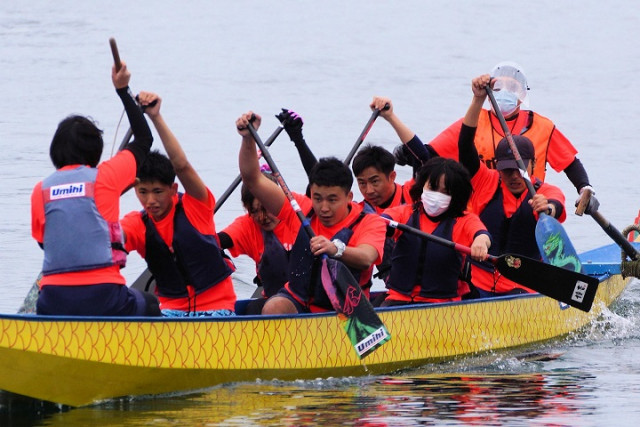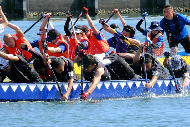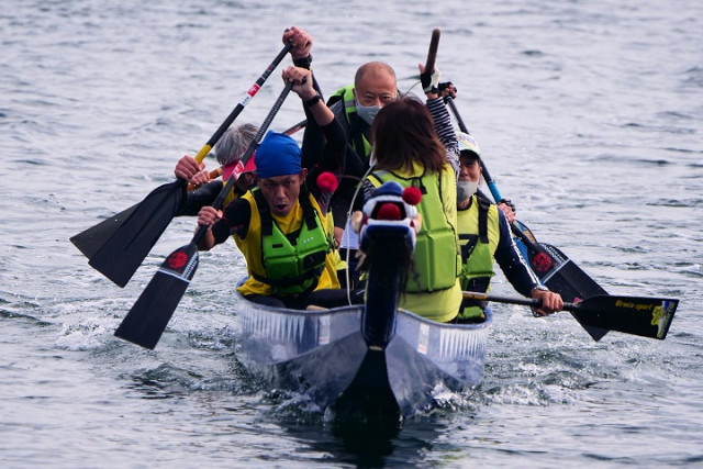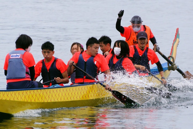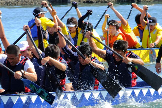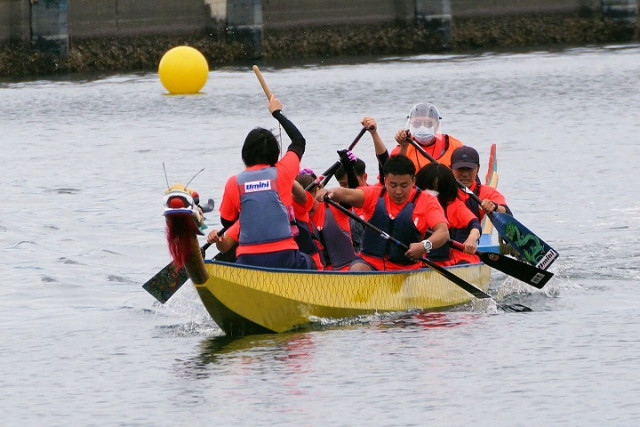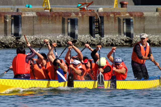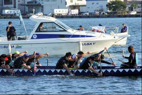 ツナカップの特徴は、国内のドラゴンボートレースで一番短い直線150mの2艇レース。漕ぎ手8名、太鼓手、舵取りの計10名といった参加しやすい人数にしてます。対戦方式も年々工夫を重ね、更に楽しめる大会を目指しております。