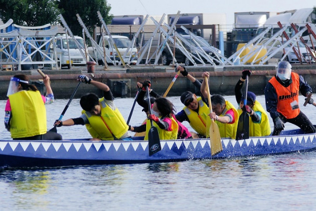 静岡ドラゴンボート大会「ツナカップ」は、ビギナーチームからベテランチームまでが楽しめる大会として、2011年に江尻船溜まりにて第1回大会を開催し、2016年の第6回大会からは会場を現在のエスパルスドリームプラザ前に移して開催をしております。