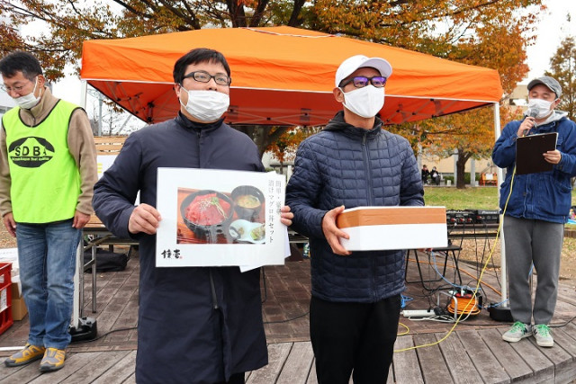 また、当初、賞品及び参加賞は大会名にちなんでマグロを基本としておりましたが、最近では協賛いただいている地元企業様が増えてきましたので、人気商品も賞品として提供いただいております。