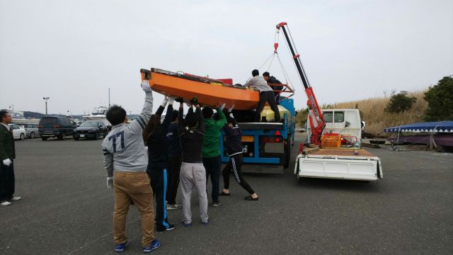 宇佐美では協会所属チーム数人のほか地元漁師さんにもご協力いただきスムーズに降ろすことが出来ました。