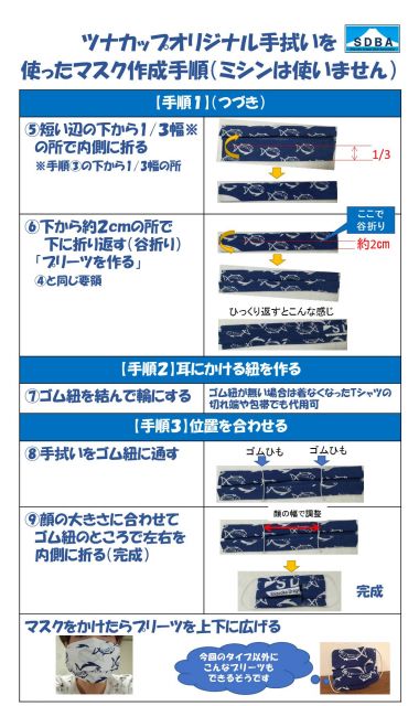 今回使用したのは「ツナカップオリジナル手拭い(白、紺色)」です。
