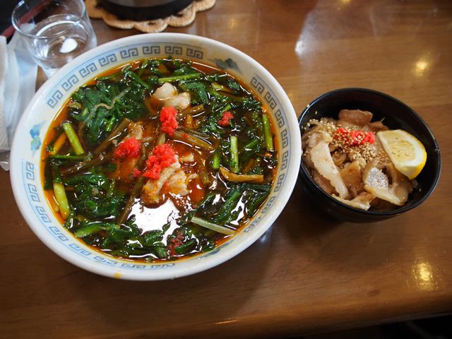 満州にらラーメン醤油とバラ味噌ミニ丼セット