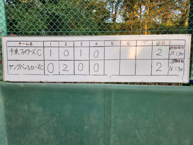 試合報告 vs ヤングバッファローズC △ 2-2 投手:エバケイ→ワタケイ→ソラト→コウセイ→リンタロウ 捕手:センノスケ 応援ありがとうございました📣