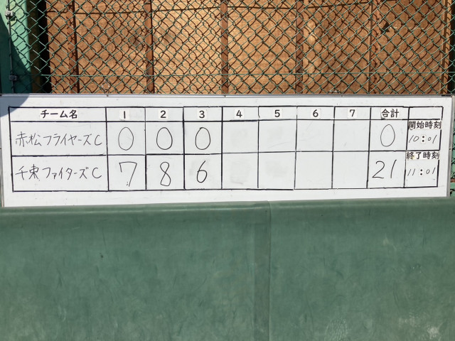 試合報告 vs 赤松フライヤーズC ○ 0-21 投手:ケイシン→チヒロ→ソラト 捕手:センノスケ RHR:リンタロウ、ワタケイ、ケイシン、センノスケ