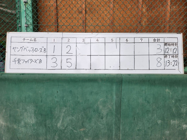 試合報告 vsヤングバッファローズB ◯3-8 投手:ジュン→エイト 捕手:ヒロト→マシュー RHR:ヒロト 応援ありがとうございました📣