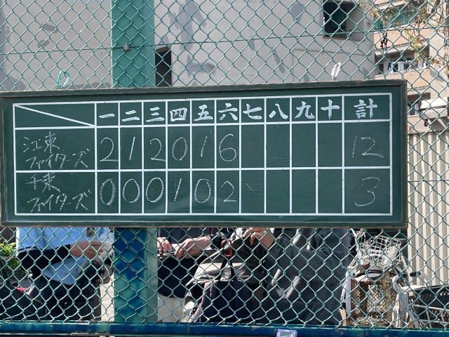 試合報告 練習試合 vs 江東ファイターズ(6年) ●12-3 投手 ヒロキ→レイ 捕手 カイ 応援ありがとうございました📣