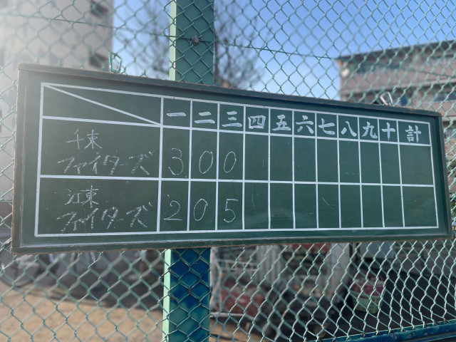 試合報告 練習試合 vs 江東ファイターズ(5年) ●3-7 投手 エイタ→ユウト 捕手 ユウキ→イチタロウ RHR シュウト 応援ありがとうございました📣