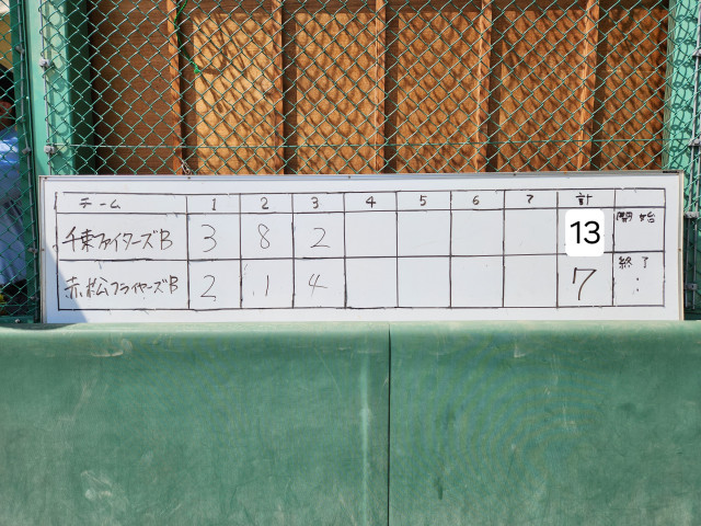 試合報告 vs 赤松フライヤーズB ○13-7 投手:マナト→マシュー 捕手:ショウマ RHR ユウジン 応援ありがとうございました📣