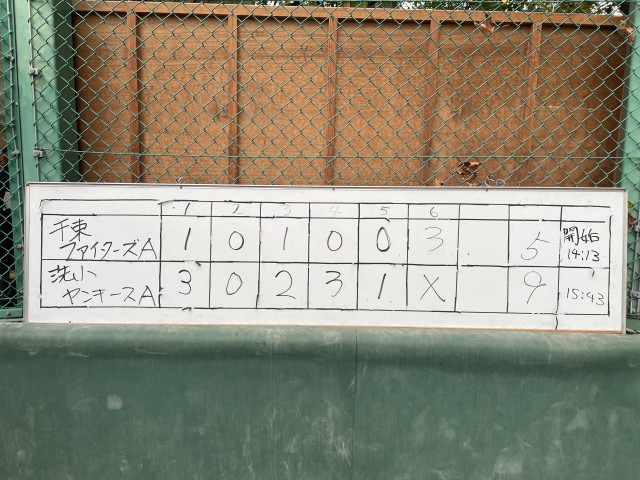 試合報告 vs 千束ファイターズB ●5-11 投手︰エイト➝ジュン➝エイト 捕手︰ショウマ 応援ありがとうございました📣