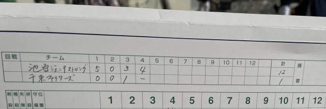 試合報告 vs 池雪ジュニアストロング ●12-1 投手 ソウマ→エイト 捕手 ソウタ 応援ありがとうございました📣