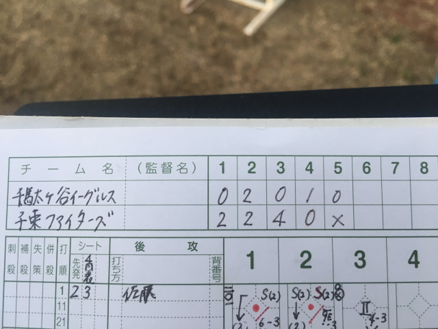 試合報告 vs 千駄ヶ谷イーグルス(4年生以下) ◯ 3-8 投手 ケイスケ→サリナ 捕手 タクミ→ケイスケ 応援ありがとうございました📣