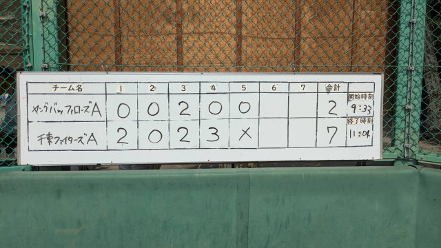 試合報告 千束秋季大会 vsヤングバッファローズA ◯2-7 投手︰エイタ→ショウタ→ショウマ→マナト 捕手︰イチタロウ HR シュウト 応援ありがとうございました📣