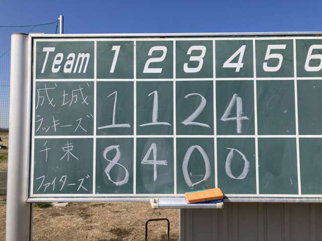 試合報告 vs成城ラッキーズ ○8-12 投手 ソウスケ→タクマ 捕手 タツノスケ→タクミ 本塁打 サリナ 応援ありがとうございました📣