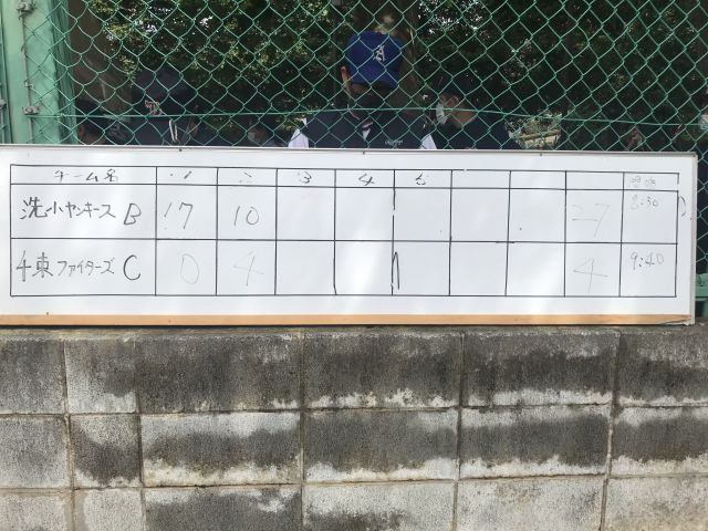 試合報告 千束地区春季トーナメント1回戦 vs 洗小ヤンキースB ●27-4 投手 ソウスケ→イッセイ→タツノスケ 捕手 タツノスケ→イッセイ 応援有難うございました!