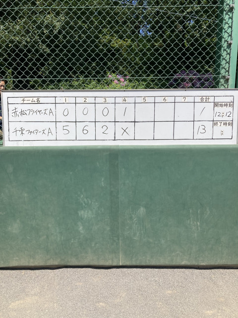 試合報告 千束春季大会・高学年リーグ vs赤松フライヤーズA ○1-13 投手 ショウタ→リュウタ 捕手 ユウキ→エイタ HR ハルタ 応援ありがとうございました📣