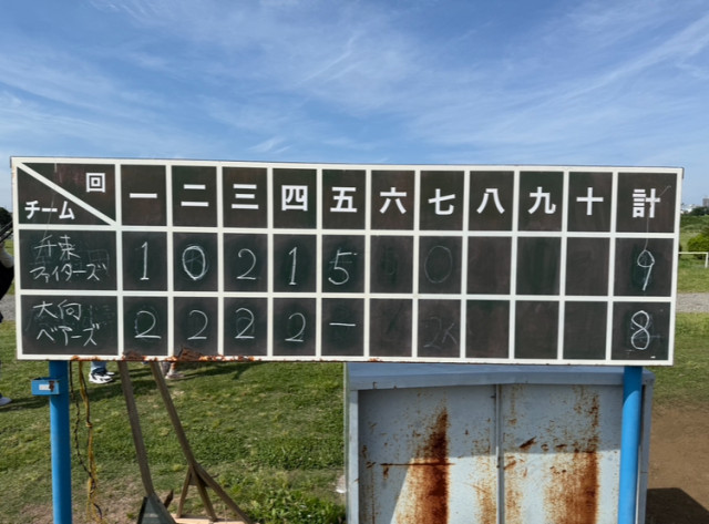 試合報告 練習試合 vs大向ベアーズ ◯9-8 投手:ショウマ→タケル→マナト→アイノスケ 捕手:マシュー→タケル 応援ありがとうございました📣