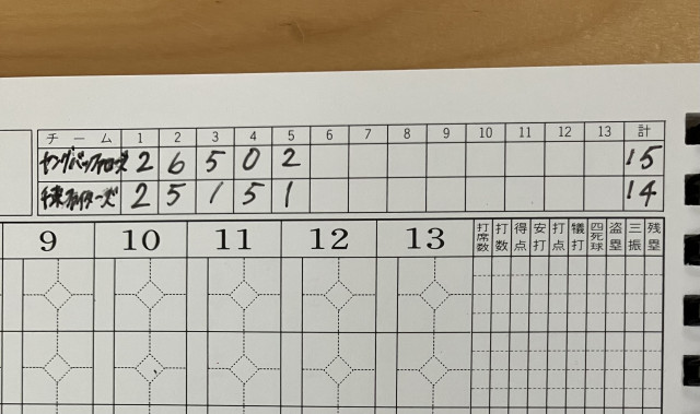 試合報告 vs ヤングバッファローズ ⚫︎15-14 投手︰リオ→ハルマ→リツト→トウシ→タイリ 捕手︰リンタロウ→コウセイ→センノスケ→ワタケイ→リンタロウ RHR ︰タイリ 応援ありがとうございました📣