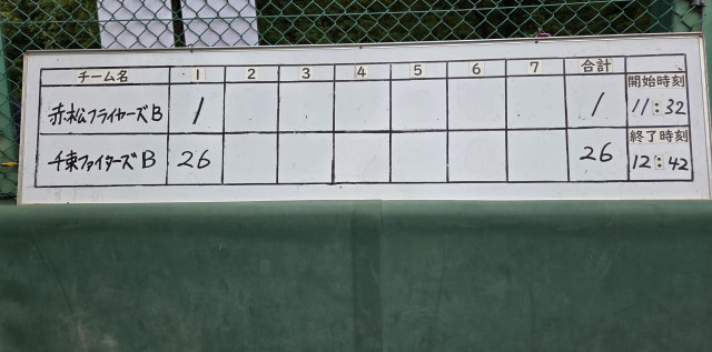 試合報告 vs 赤松フライヤーズB ○1-26 投手︰ソラト 捕手︰エイト RHR︰ユウト、チヒロ 応援ありがとうございました📣