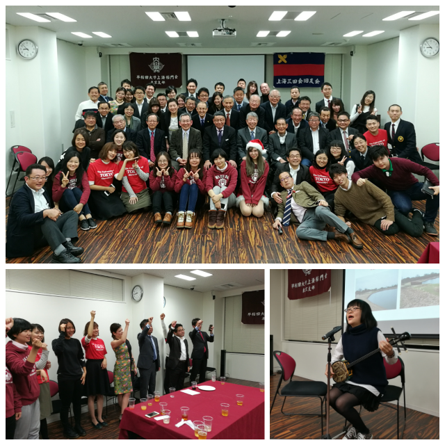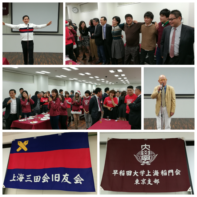 早慶クリパ64名(早37慶27)が集まり、盛大に開催。学生挨拶、上海クイズ、なおごの歌、エール交換、若き血、早稲田校歌と早慶両校の交流が深まりました。