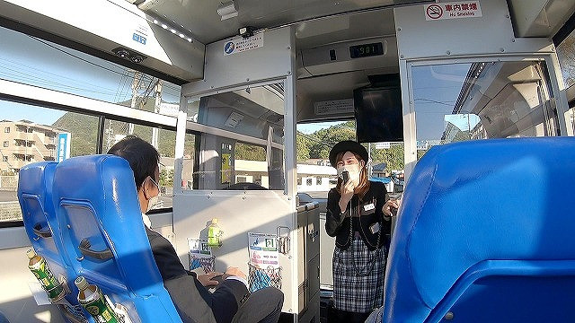 参加者は、30名でオープントップバス1台で長崎駅西口を午前8時30分に出発し、日見公園前で参加者全員が乗り込み最初の目的地、南島原地区へ、途中「千々石展望台」で休憩し予定とおり10時30分に雲仙サンエスファームに到着しました。ここでは、普段なかなか見ることができない「菌床しいたけ」の工場見学や収穫体験ができ生シイタケを土産に持ち帰ることができました。