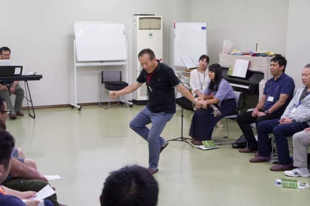 part4では、イェールを中心に、大阪連盟の日上光明(日本連盟スカウトソング特別委員会委員)さん、愛知連盟の志賀靖之さんと中山高行さんが担当されました。安定感ある日上節(?)とエネルギッシュな若きホープの志賀さん、オジサン風を吹きまくる中山さんの見事な競演でした。