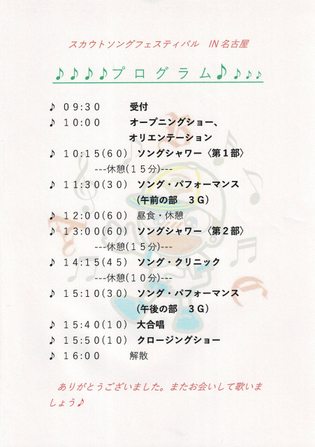 スカウトソング・フェスティバル in 名古屋 当日プログラム