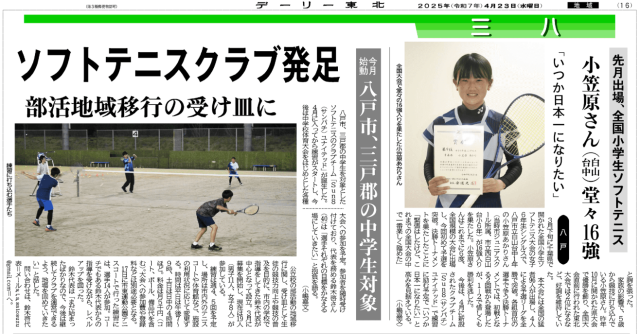 デーリー東北新聞にクラブ活動を掲載頂きました