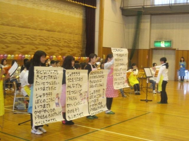 2曲目 夢をかなえてドラえもん(歌詞カードはNICUスタッフの方に持ってもらいました)