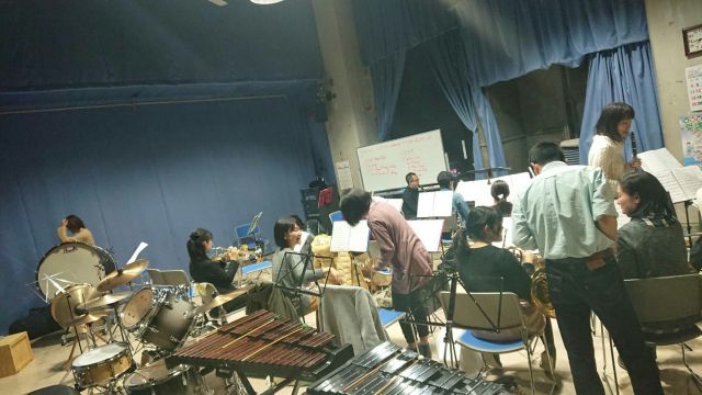 Cond. 1、Fl.4、Ob. 1、Bsn.0、Cl.5 (内、1名見学者)、B.Cl.1 、Sax. 3、Tp. 2、Hr. 2、Tb. 0、Eup. 1、Tu.0、Perc. 3 (内、1名休団見学者)