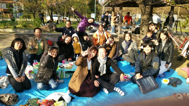 昨年同様の妙法寺川公園で、団員+家族の17名(キッズ2人)が集まりました( *´艸`)