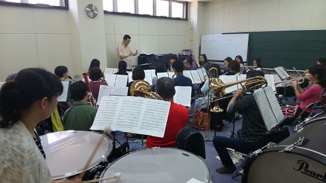 Cond. 1、Fl.4、Ob. 1、Bsn.1、Cl.6 、B.Cl.1 、Sax. 5、Tp. 3、Hr. 2、Tb. 3、Eup. 2、Tu.1、St.B.1(うち見学者1)、Perc. 5